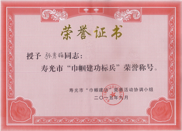 本報訊 2015年9月10日,在全市婦聯系統文明創建工作推進工作表彰會議上,我集團鑫利農發公司張秀梅經理、路斯股份公司國際銷售部分別被授予“壽光市巾幗建功標兵”、“壽光市巾幗文明崗”榮譽稱號。