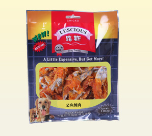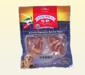 產品名稱:鱈魚圈纏肉 規格型號:180g 每箱數量:30袋 公司網址:www.luspet.com